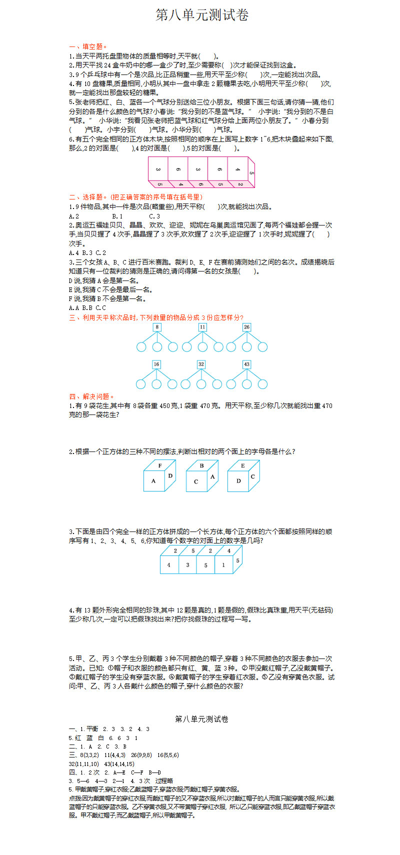 **2021年冀教版六年级数学上册第八单元测试题及答案,word格式,共3页,可打印下载**