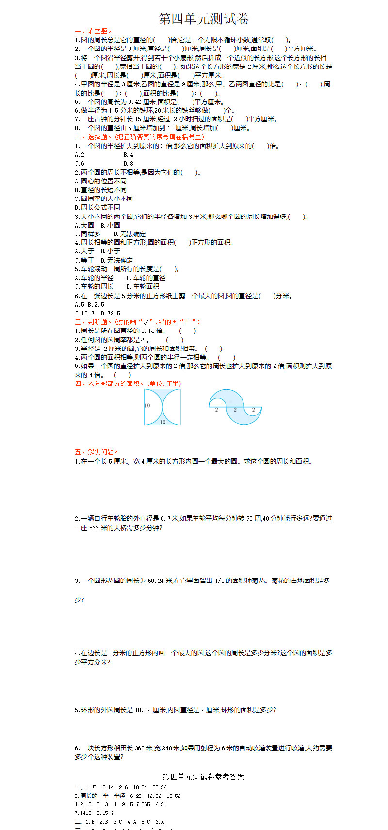**2021年冀教版六年级数学上册第四单元测试题及答案,word格式,共3页,可打印下载**
