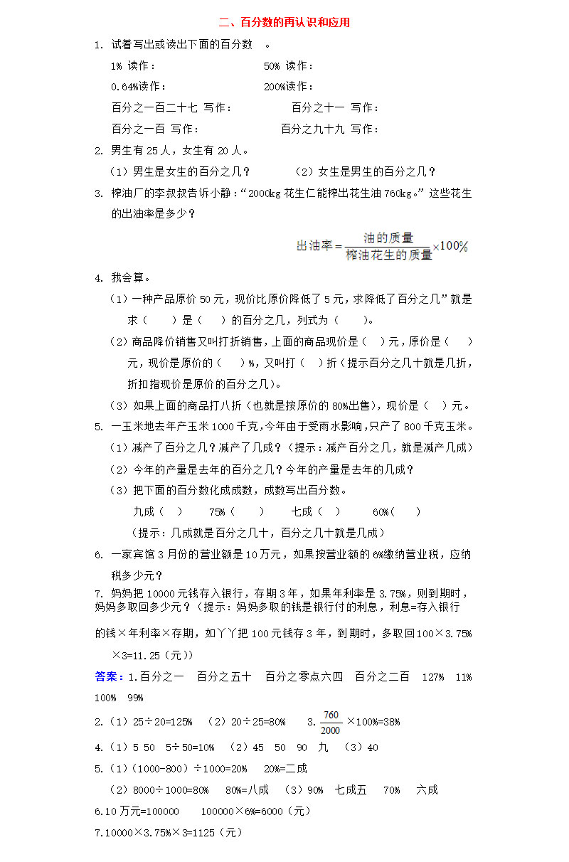 **2021年青岛版六年级上册二百分数的再认识和应用期末复习题及答案,word格式,共2页,可打印下载**