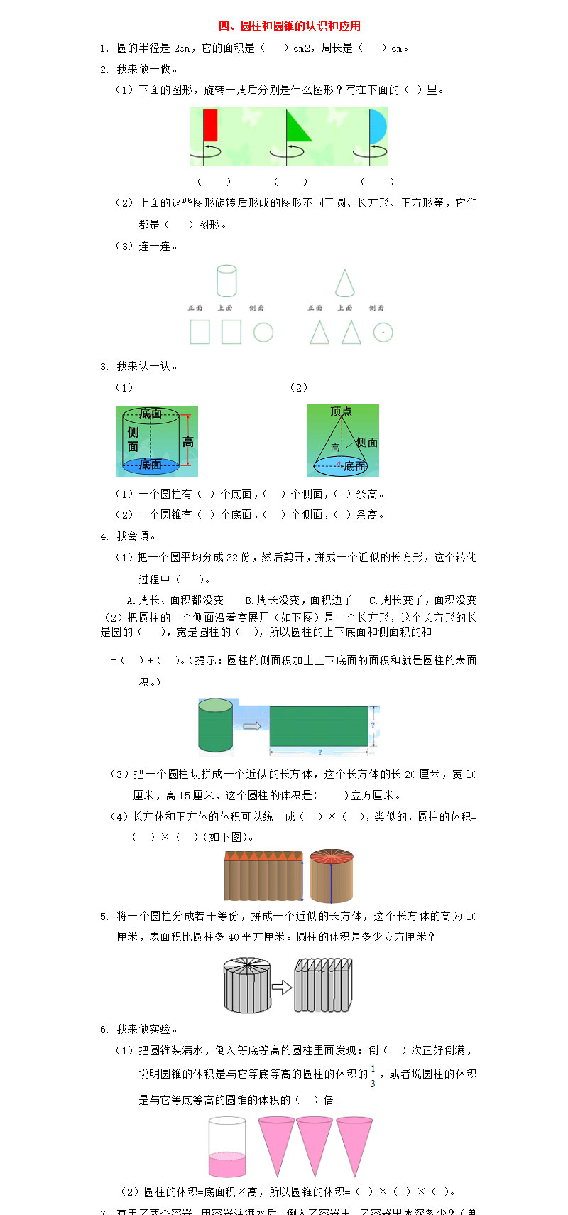 **2021年青岛版六年级上册圆柱和圆锥的认识和应用期末复习题及答案,word格式,共3页,可打印下载**