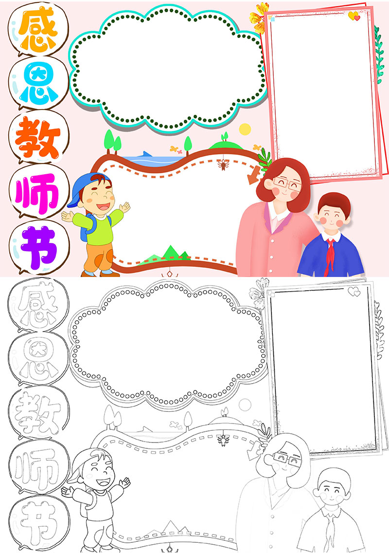 感恩有你教师节小报手抄报word模板