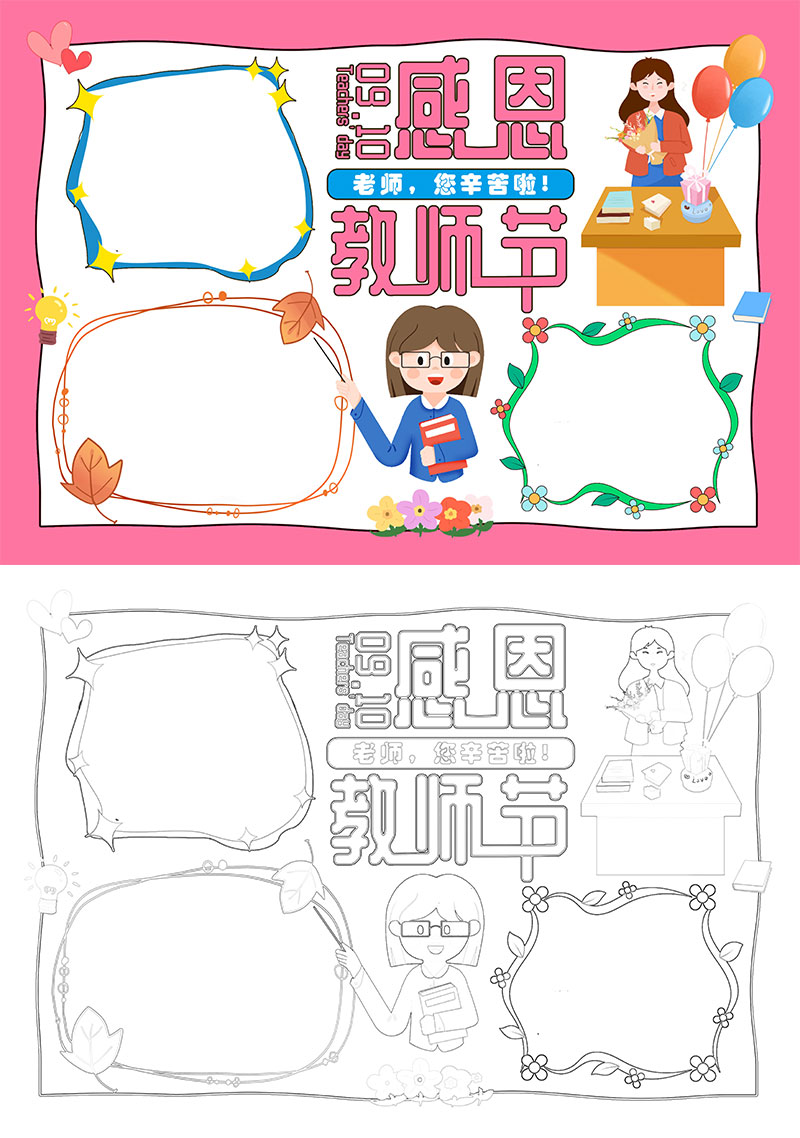 **粉色清新教师节小报手抄报word模板d,格式为word,节日手抄报风格,可用于手抄报/小报演讲展示,文字图片可以直接替换,使用简单方便。**