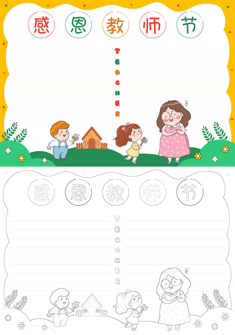 **卡通活泼手绘感恩老师节教师节,格式为word,节日手抄报风格,可用于手抄报/小报演讲展示,文字图片可以直接替换,使用简单方便。**