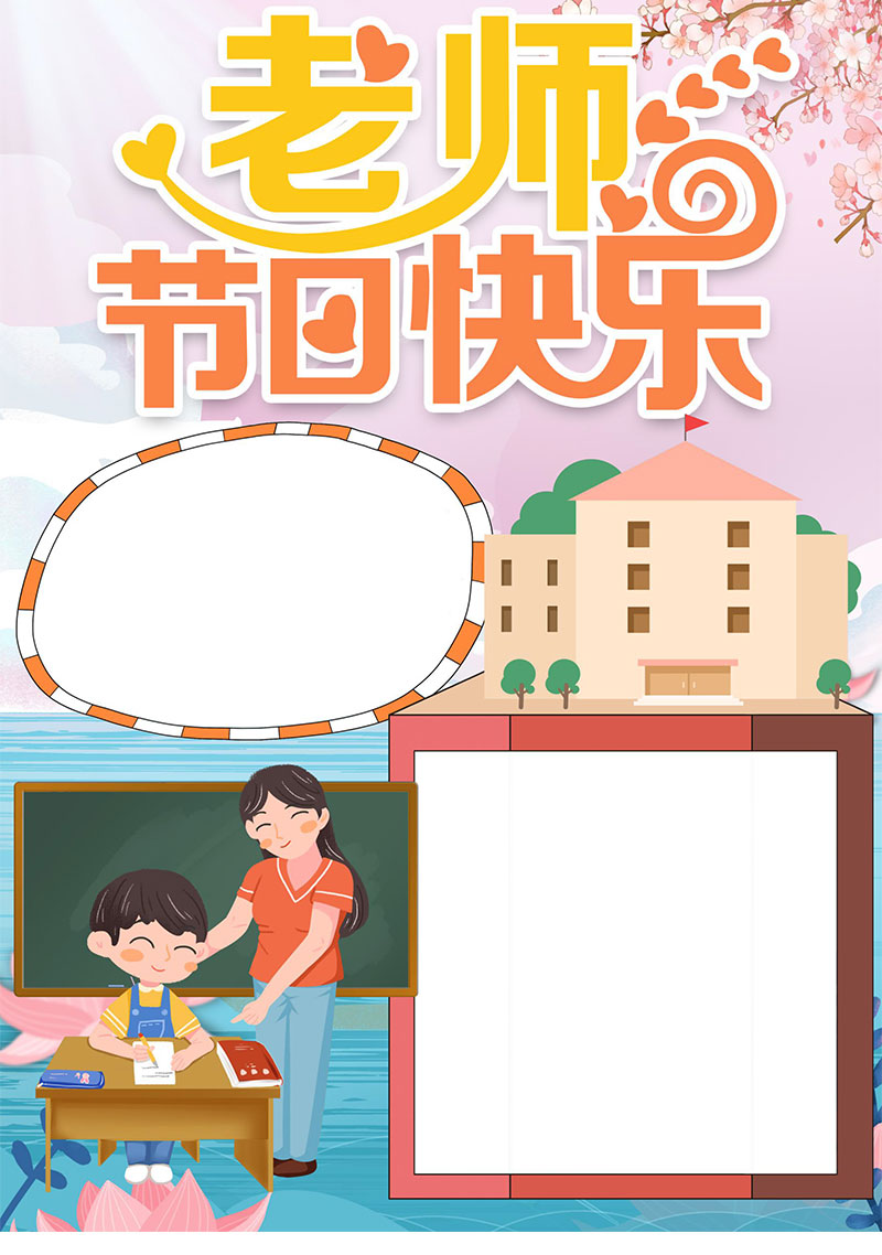 粉色插画风格感恩教师节小报手抄报
