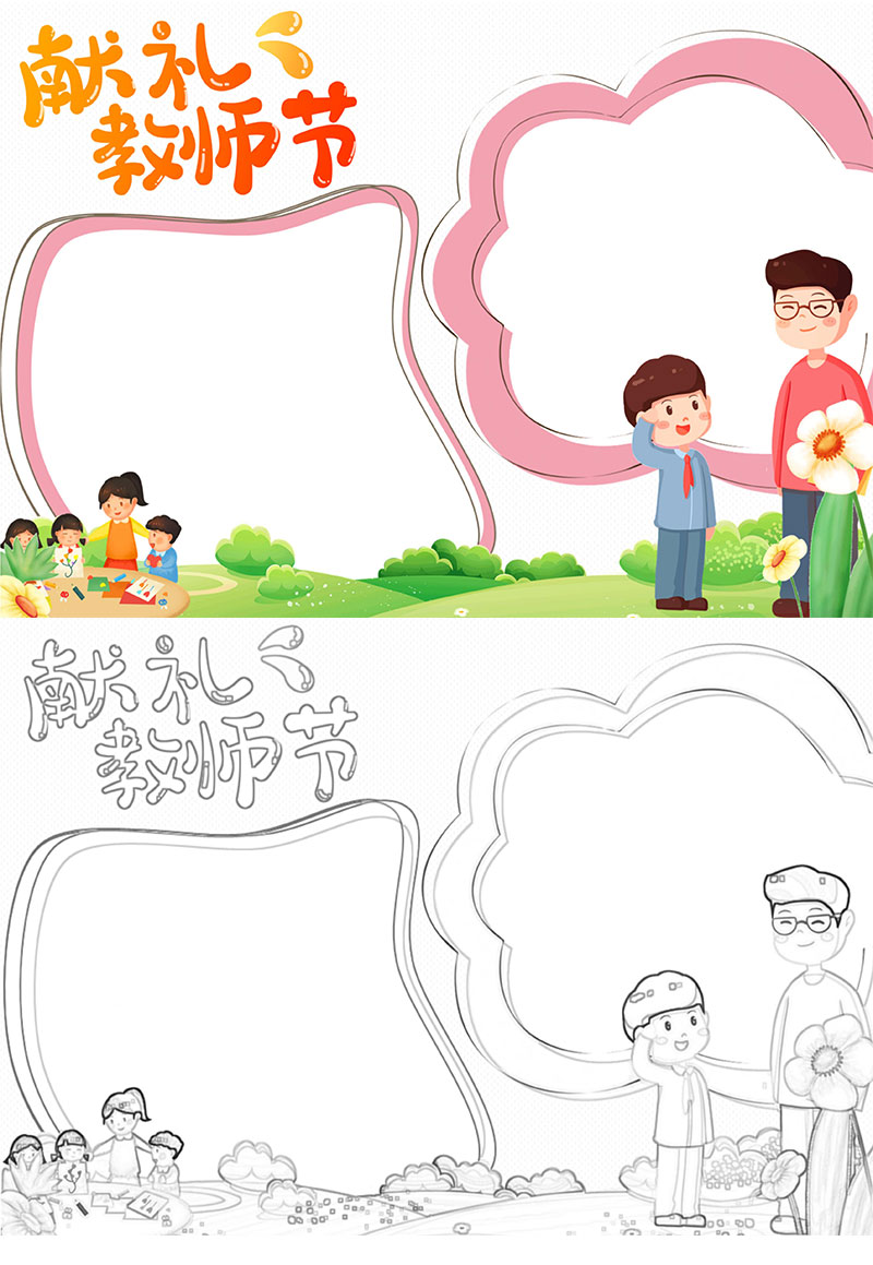 粉色系卡通老师赞歌感恩教师节节日小报手抄报