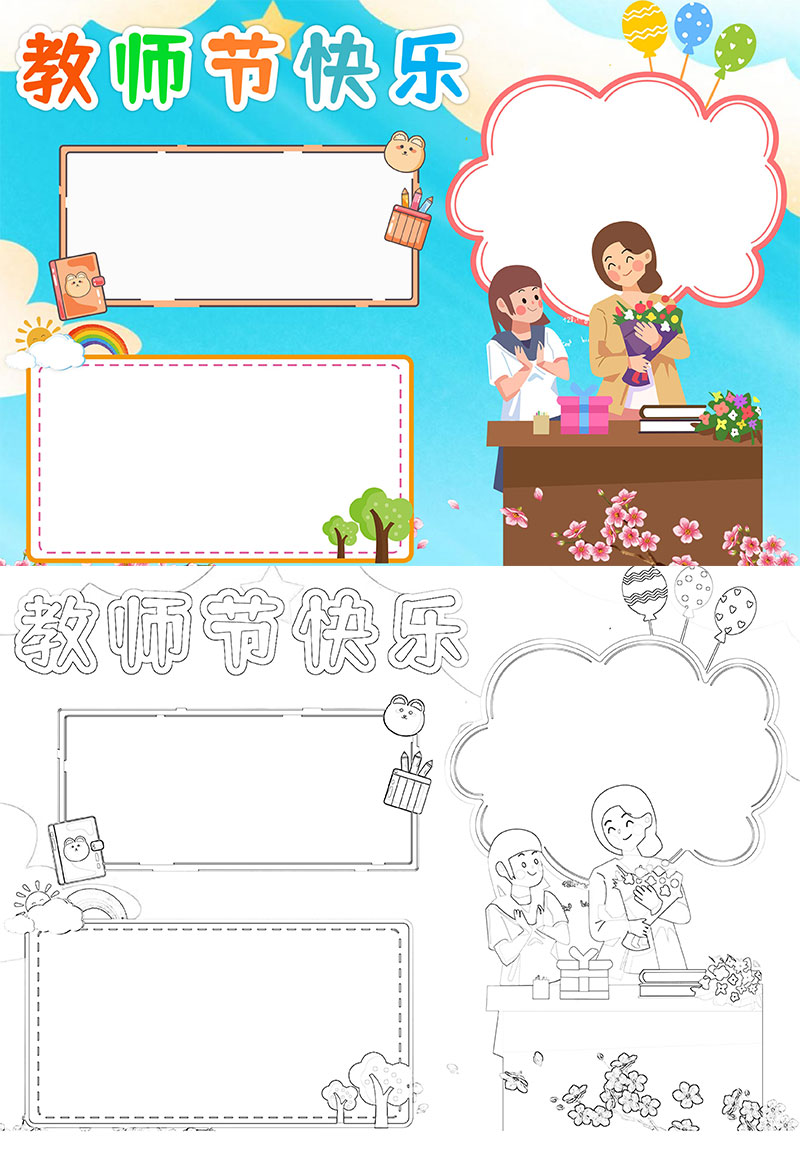 **卡通风格教师节小报手抄报节日小报手抄报,格式为word,节日手抄报风格,可用于手抄报/小报演讲展示,文字图片可以直接替换,使用简单方便。**