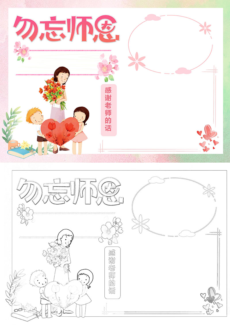 勿忘师恩教师节粉色卡通师恩难忘手抄报小报感恩班主任