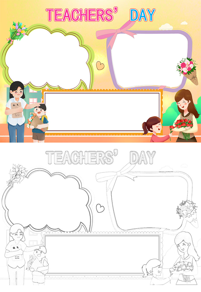 彩色色卡通HappyTeachersDay教师节英文小报手抄报