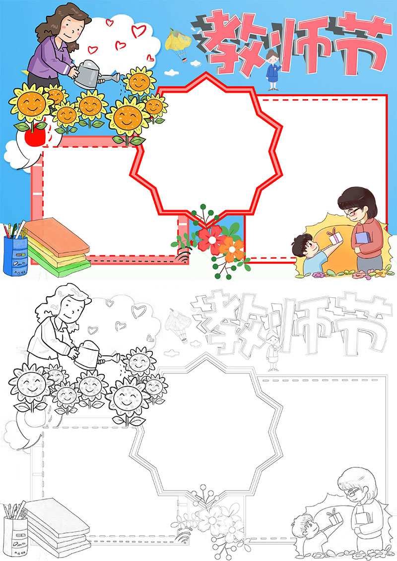 **蓝色卡通教师节卡通小报手抄报,格式为word,节日手抄报风格,可用于手抄报/小报演讲展示,文字图片可以直接替换,使用简单方便。**