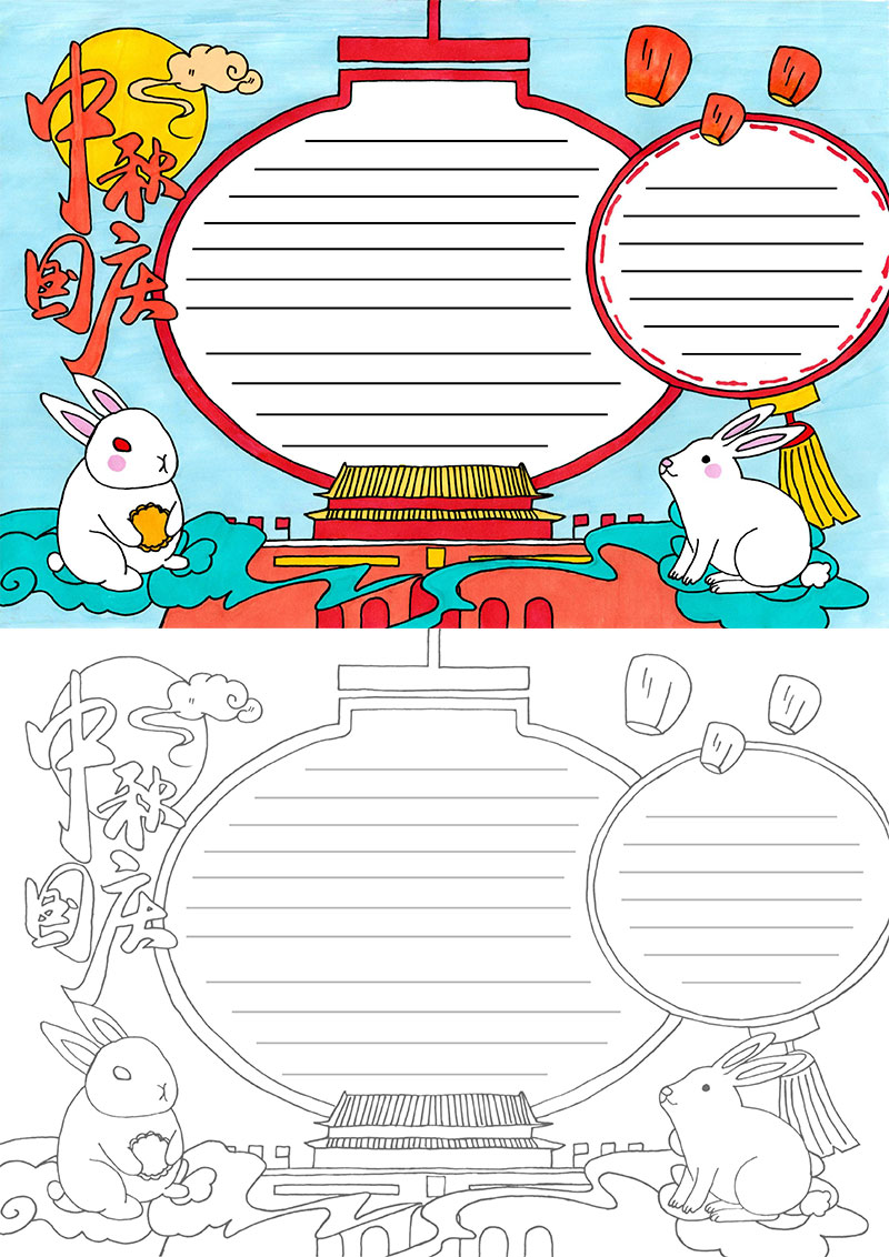 **欢乐中秋国庆小报手抄报word模板,格式为word,节日手抄报风格,可用于手抄报/小报演讲展示,文字图片可以直接替换,使用简单方便。**