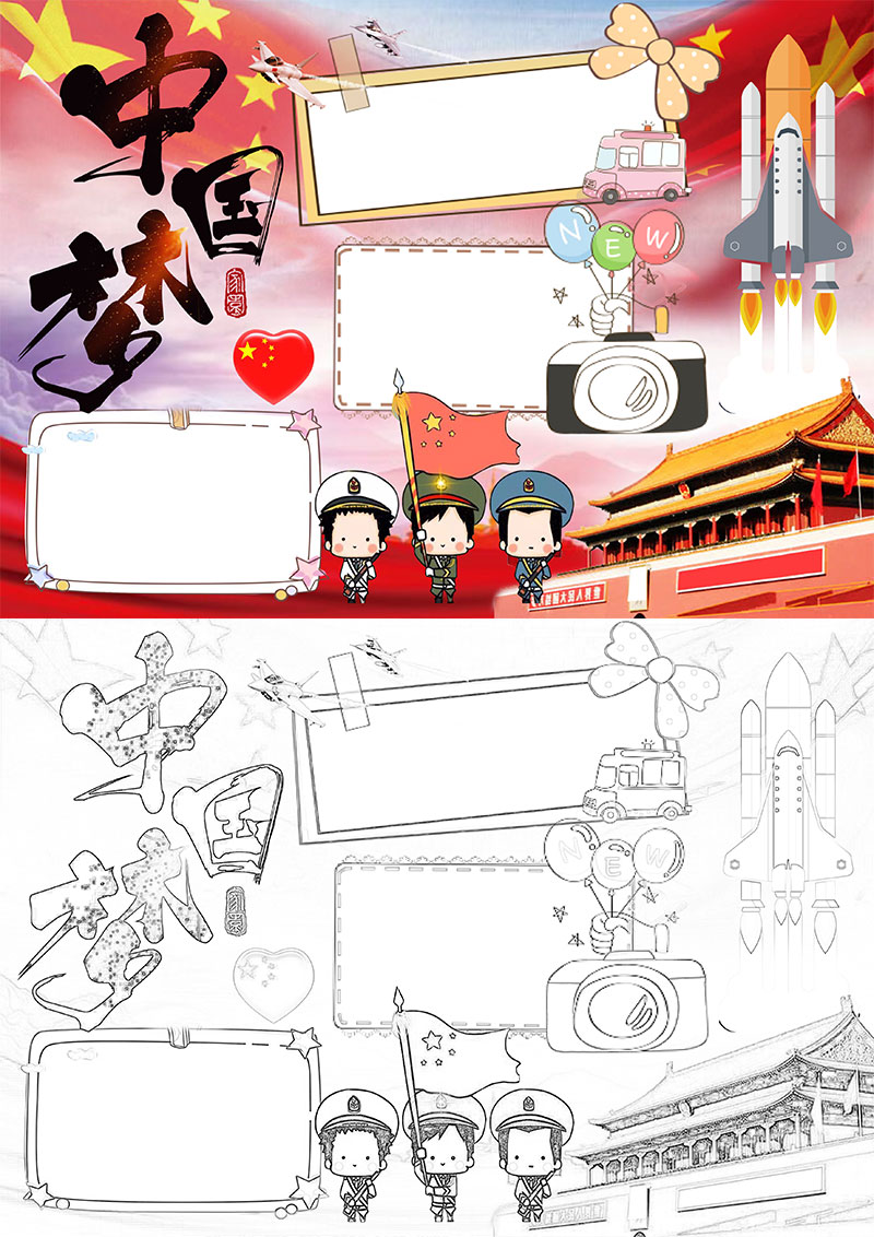 **中国梦手抄报word模板,格式为word,节日手抄报风格,可用于手抄报/小报演讲展示,文字图片可以直接替换,使用简单方便。**