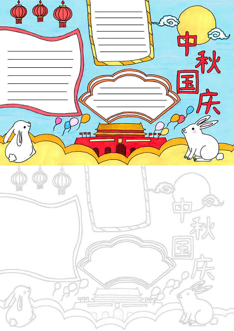 卡通迎国庆庆中秋手抄报中秋国庆小报