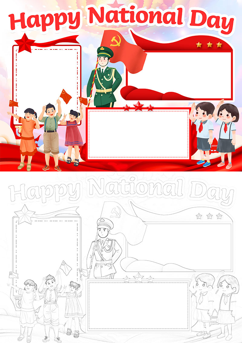 **卡通国庆节英语小报手抄报word模板,格式为word,节日手抄报风格,可用于手抄报/小报演讲展示,文字图片可以直接替换,使用简单方便。**