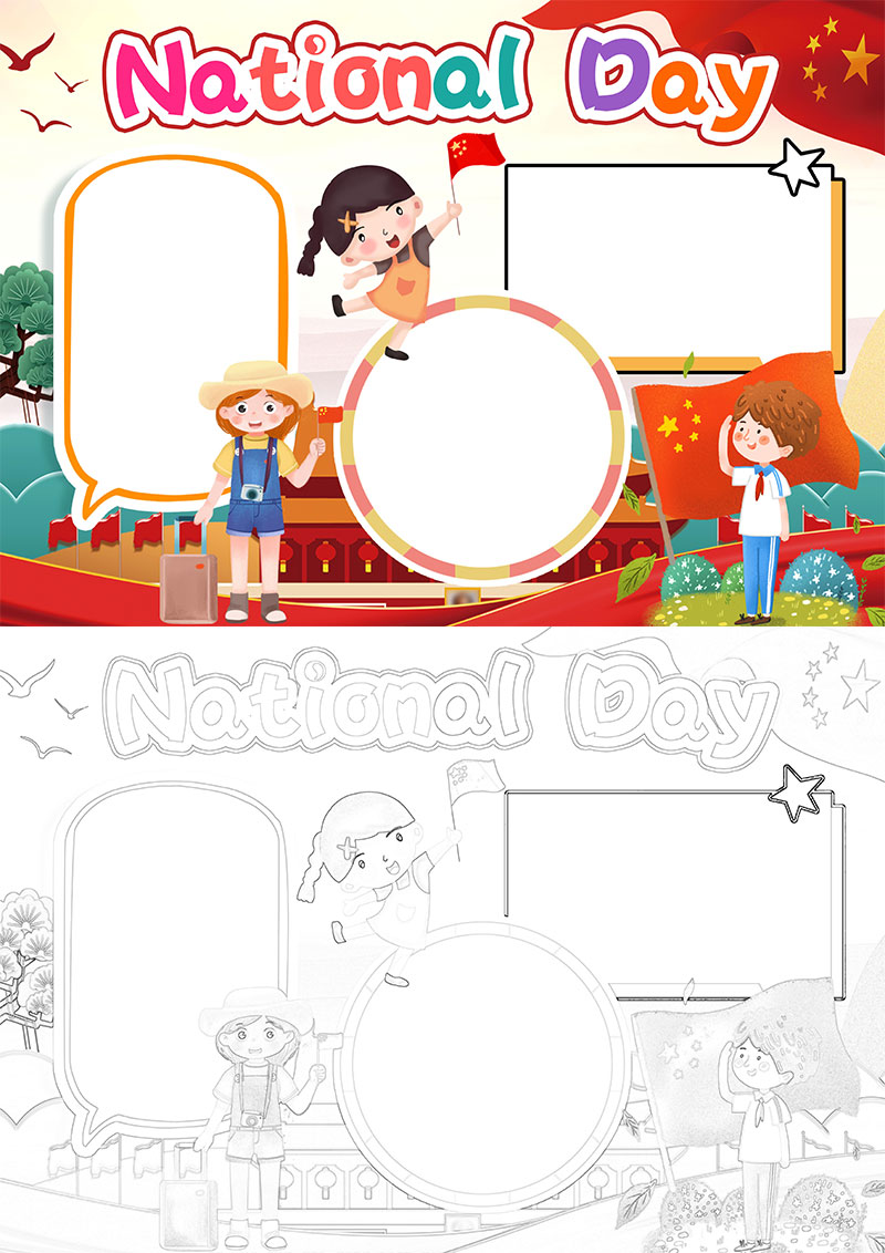 **红色卡通风格十一国庆节手抄报欢度国庆电子手抄报word模版,格式为word,节日手抄报风格,可用于手抄报/小报演讲展示,文字图片可以直接替换,使用简单方便。**