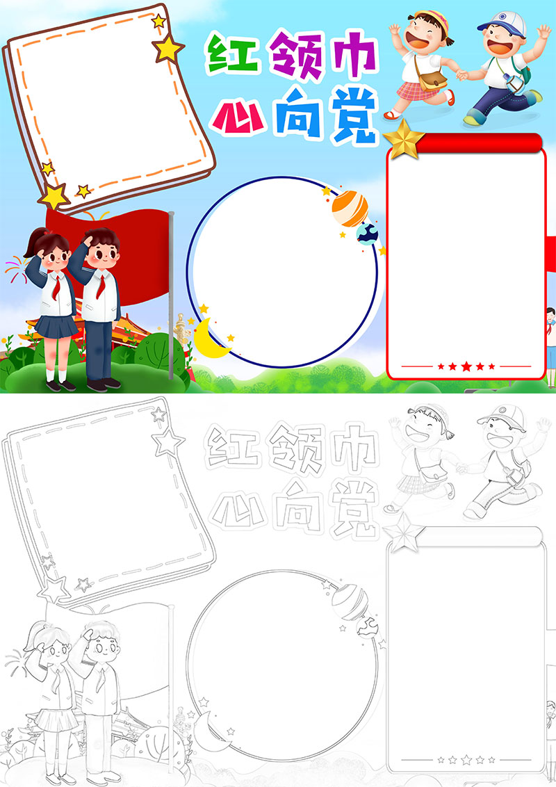 红领巾心向党手抄报word模板建党节小报word模板