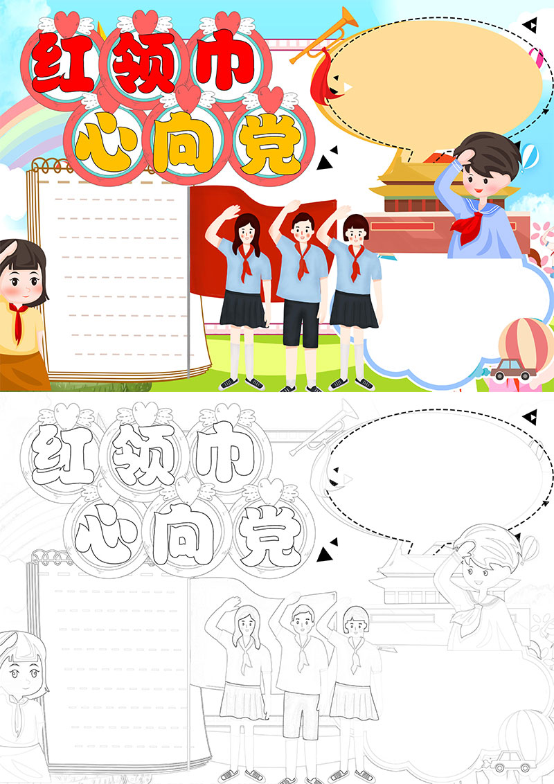 **红领巾心向党手抄报小报模板,格式为word,节日手抄报风格,可用于手抄报/小报演讲展示,文字图片可以直接替换,使用简单方便。**