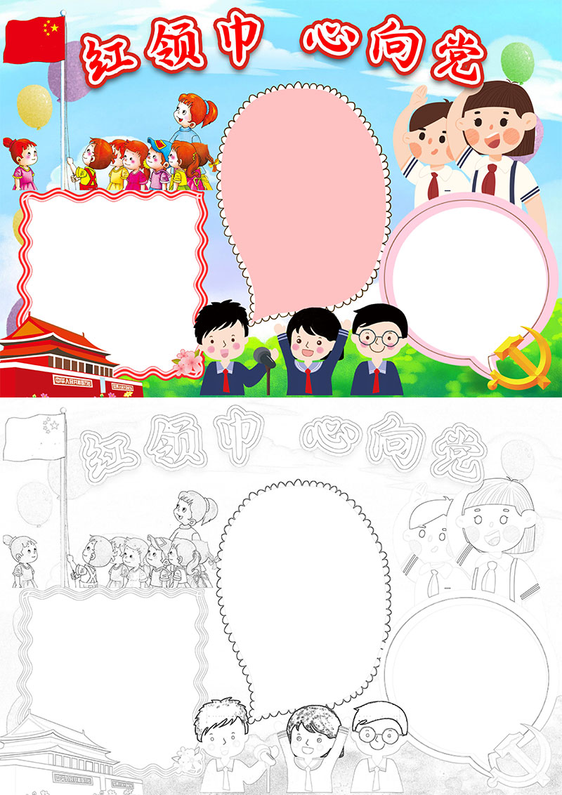**简约建党节红领巾心向党教育手抄报边框Word模板,格式为word,节日手抄报风格,可用于手抄报/小报演讲展示,文字图片可以直接替换,使用简单方便。**