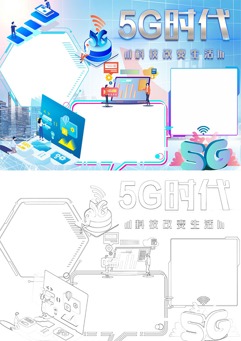 **5G时代科技创新小报手抄报word模板,格式为word,节日手抄报风格,可用于手抄报/小报演讲展示,文字图片可以直接替换,使用简单方便。**
