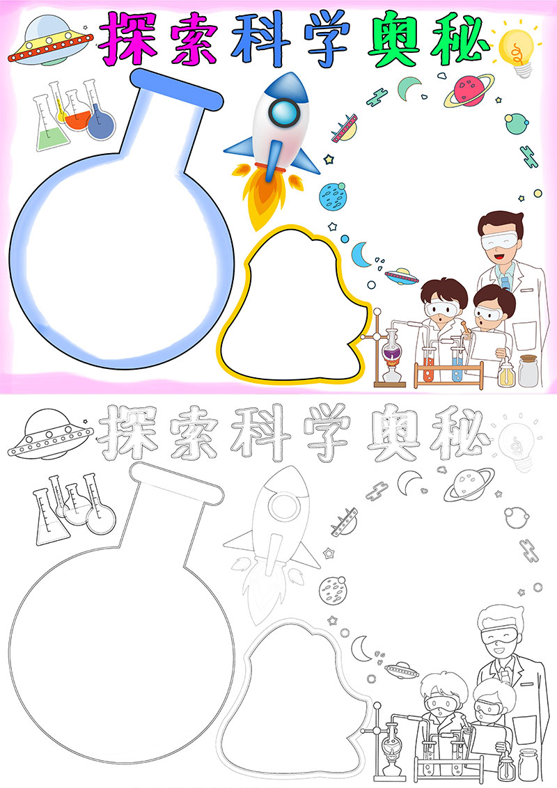 **蓝色卡通探索科学奥秘小报手抄报word模板,格式为word,节日手抄报风格,可用于手抄报/小报演讲展示,文字图片可以直接替换,使用简单方便。**