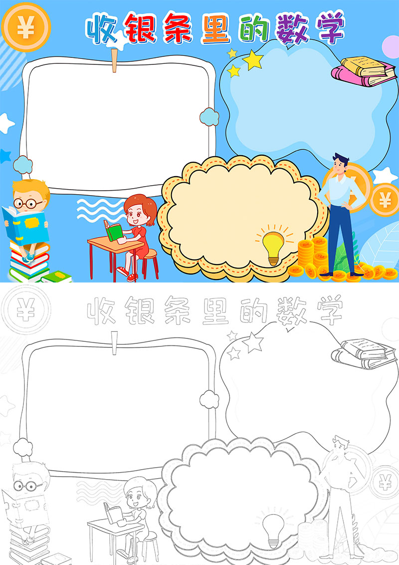 **收银条里的数学小学生word手抄报小报模板,格式为word,可用于手抄报/小报演讲展示,文字图片可以直接替换,使用简单方便。**