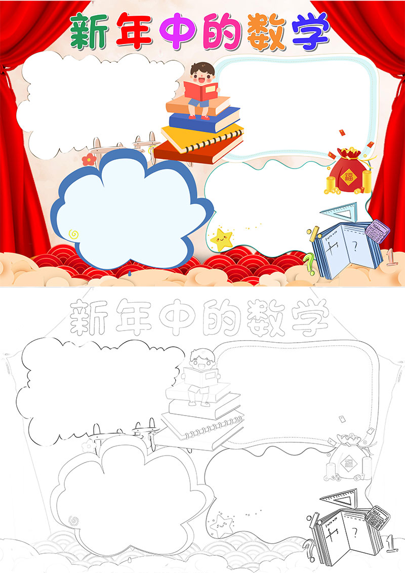 新年中的数学小学生word手抄报小报模板