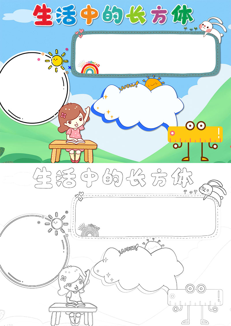 生活中的长方体数学word手抄报小报模板