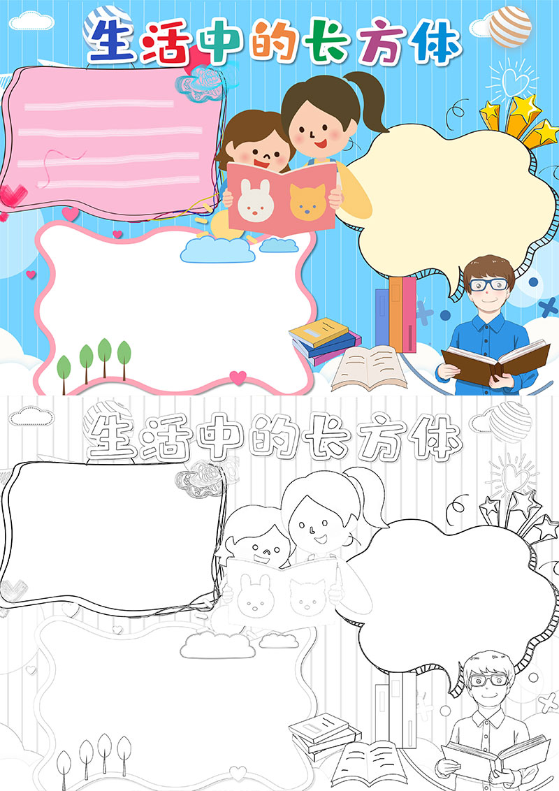 蓝色卡通儿童可爱生活中的数学手抄报小报
