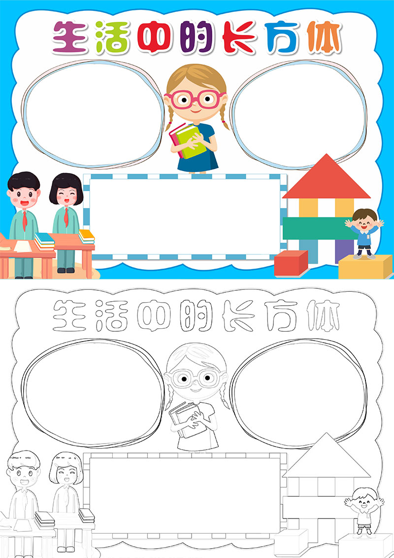 可爱卡通生活中的长方体数学word手抄报小报模板
