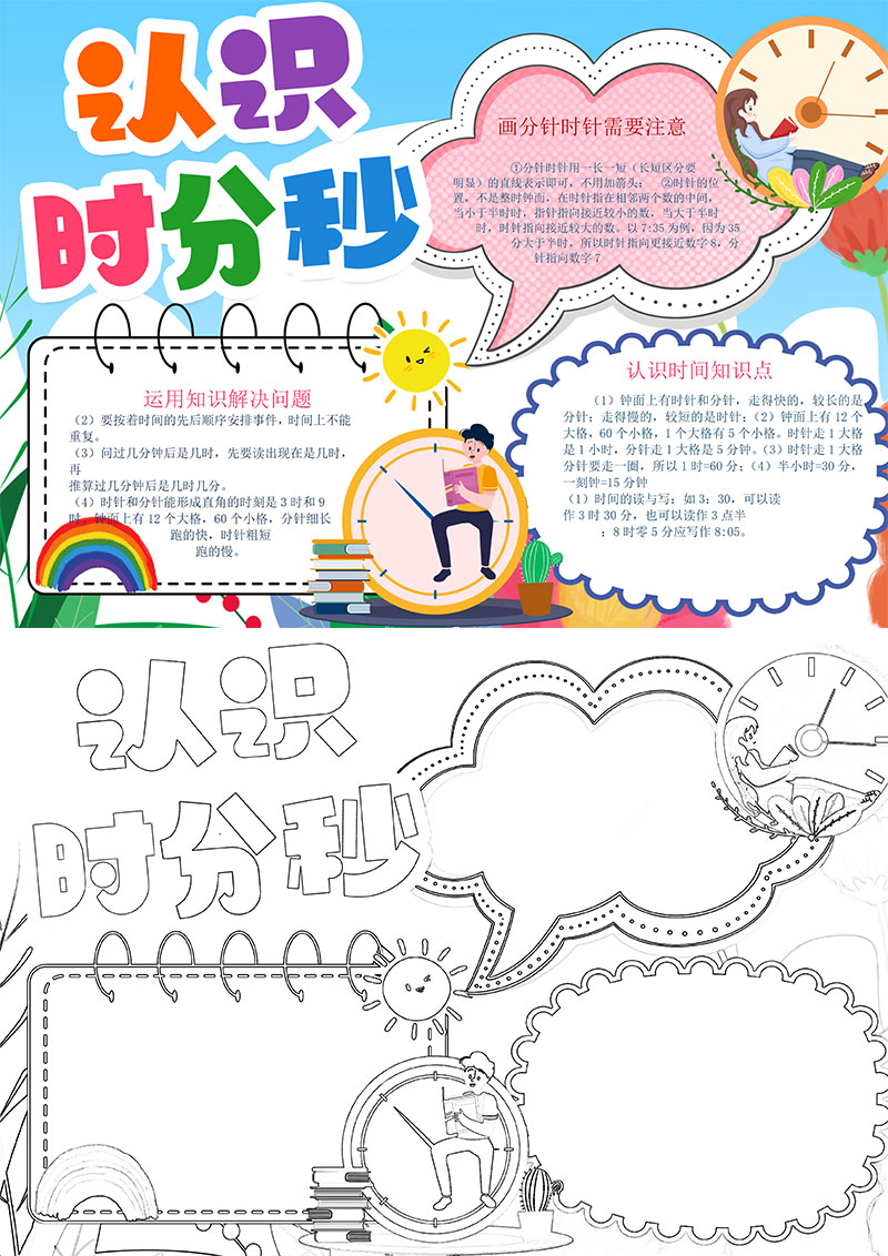 **认识时分秒小学生word手抄报小报模板,格式为word,可用于手抄报/小报演讲展示,文字图片可以直接替换,使用简单方便。**