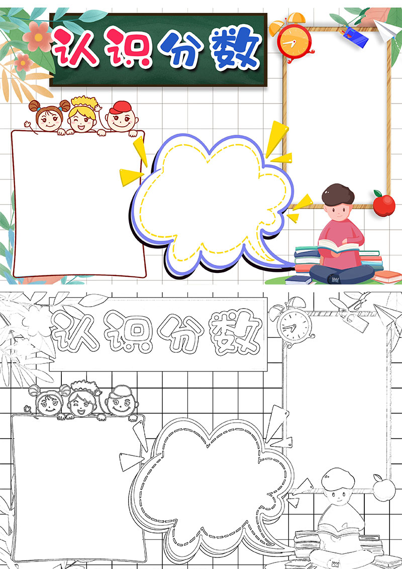**认识分数小学卡通数学小报手抄报,格式为word,可用于手抄报/小报演讲展示,文字图片可以直接替换,使用简单方便。**