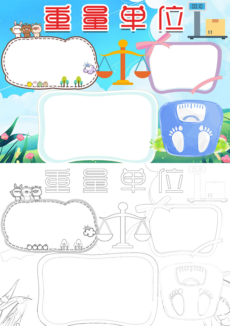 **重量单位小学卡通数学小报手抄报,格式为word,可用于手抄报/小报演讲展示,文字图片可以直接替换,使用简单方便。**