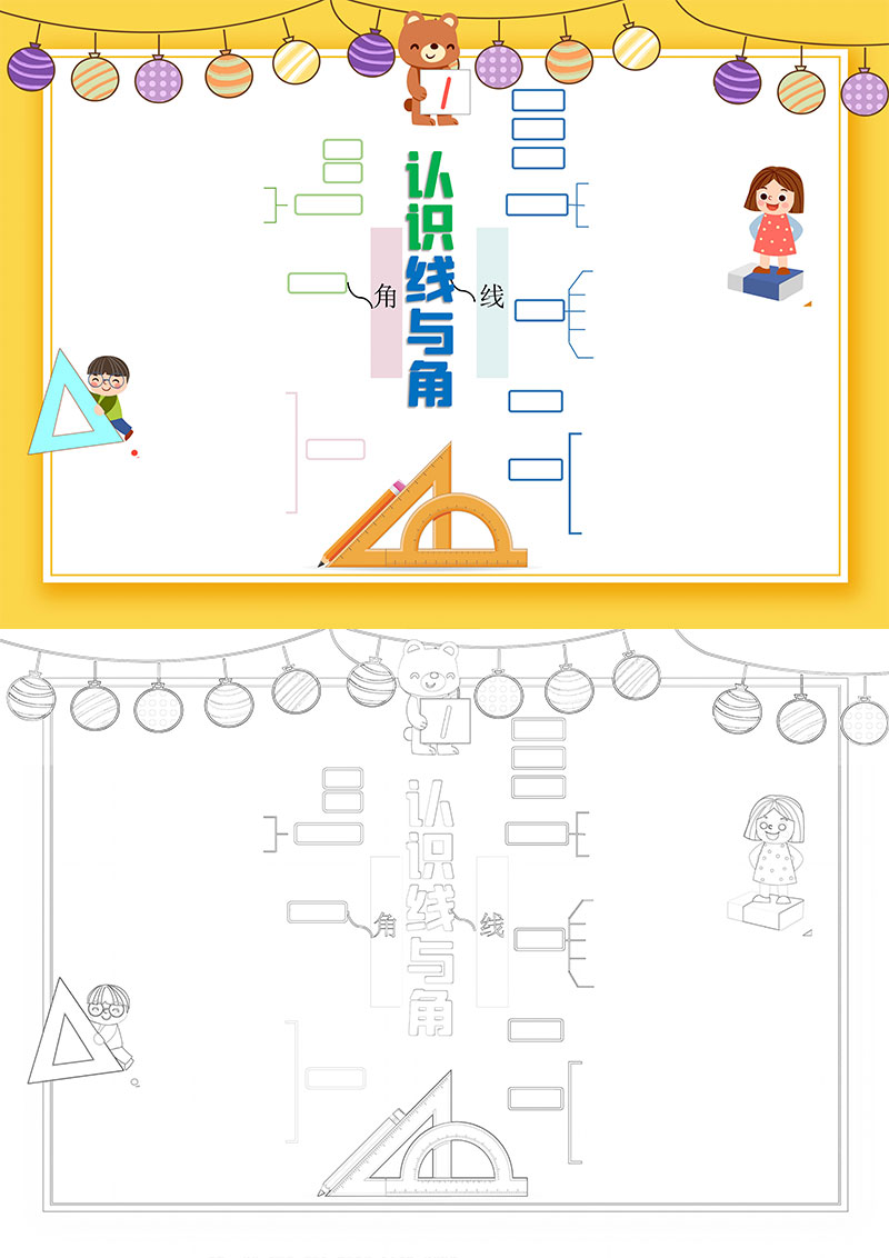 认识线与角小学卡通数学小报手抄报word模板