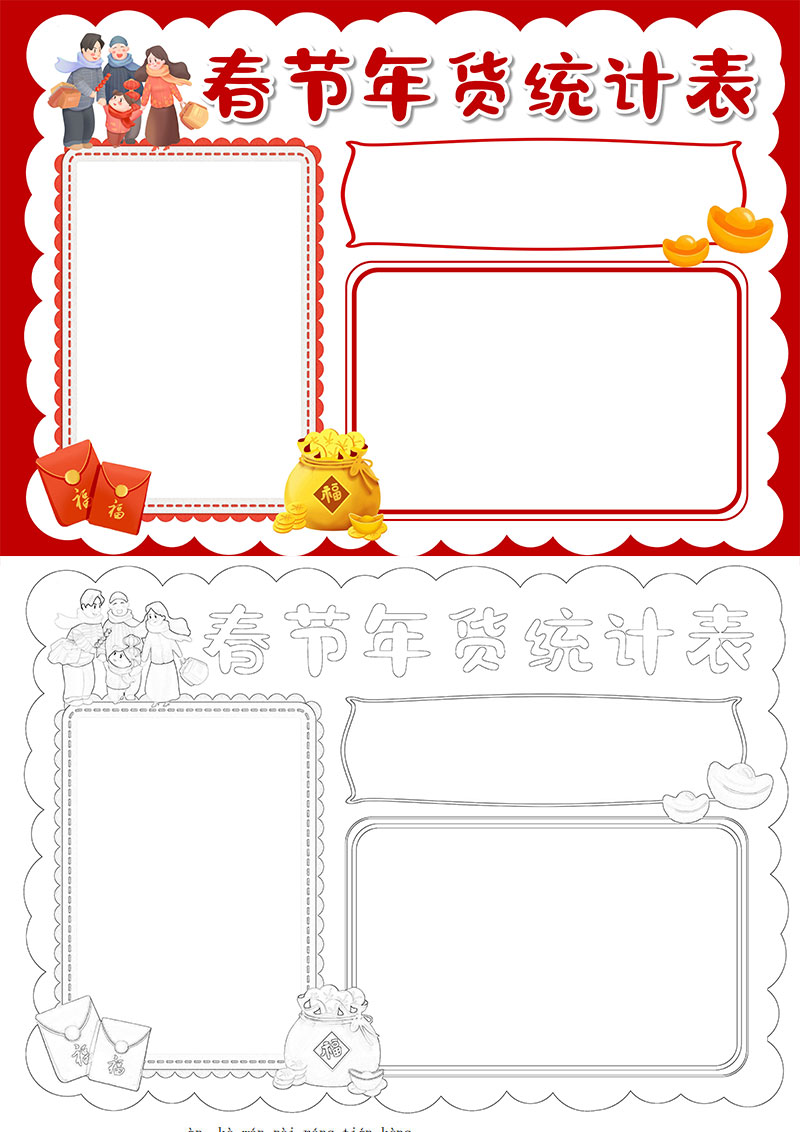 春节年货统计表卡通数学小报手抄报