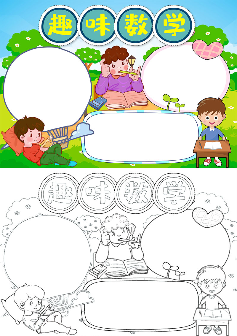 绿色卡通趣味数学小学卡通数学小报手抄报word模板
