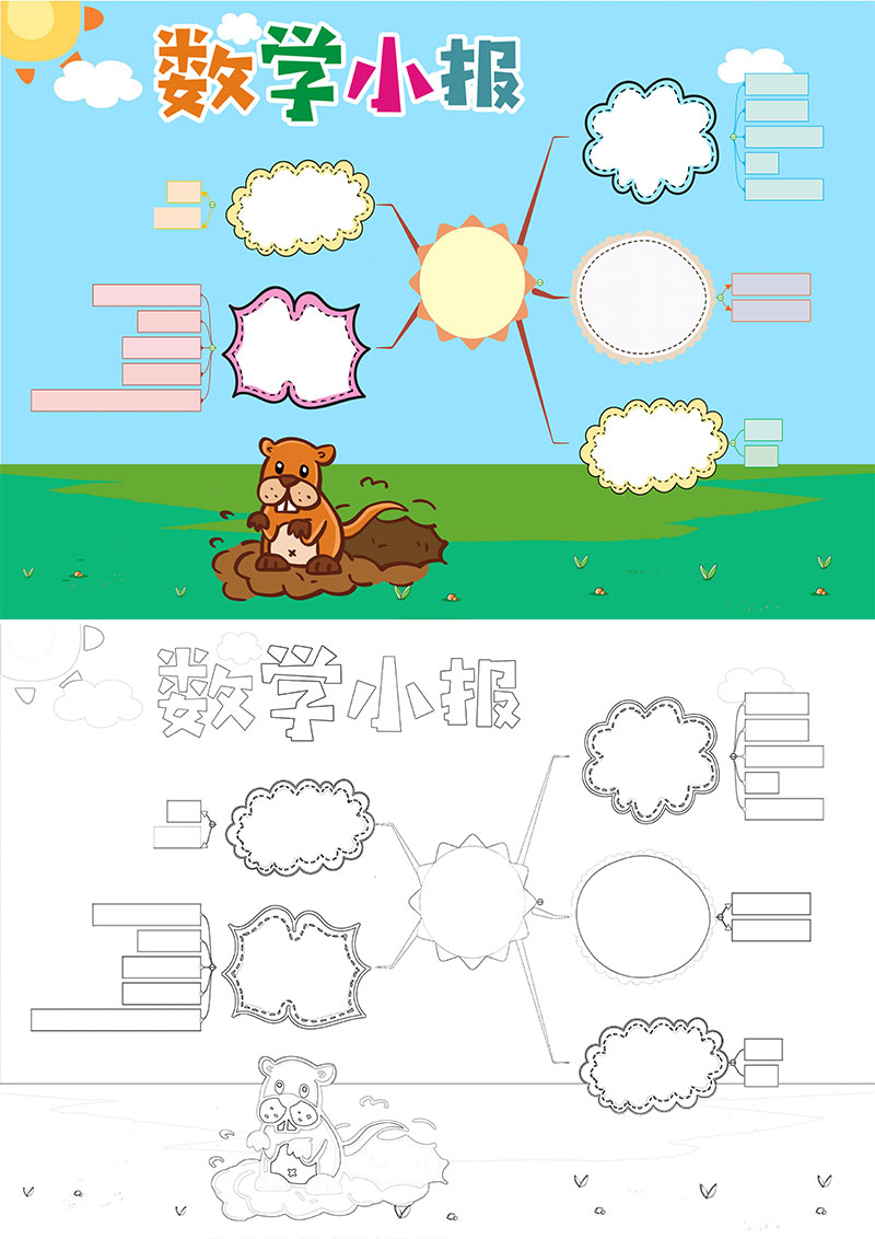 卡通袋鼠小学卡通数学小报手抄报word模板