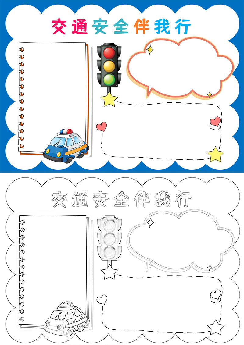 **交通安全简约卡通小学生word手抄报小报模板,格式为word,可用于手抄报/小报演讲展示,文字图片可以直接替换,使用简单方便。**