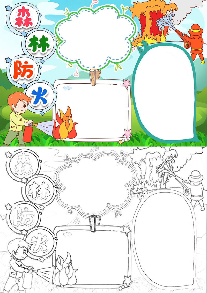 **绿色卡通森林防火 人人有责Word模板,格式为word,可用于手抄报/小报演讲展示,文字图片可以直接替换,使用简单方便。**