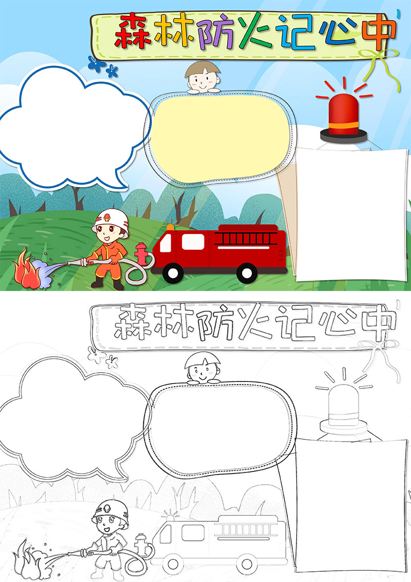 卡通森林防火小报手抄报word模版