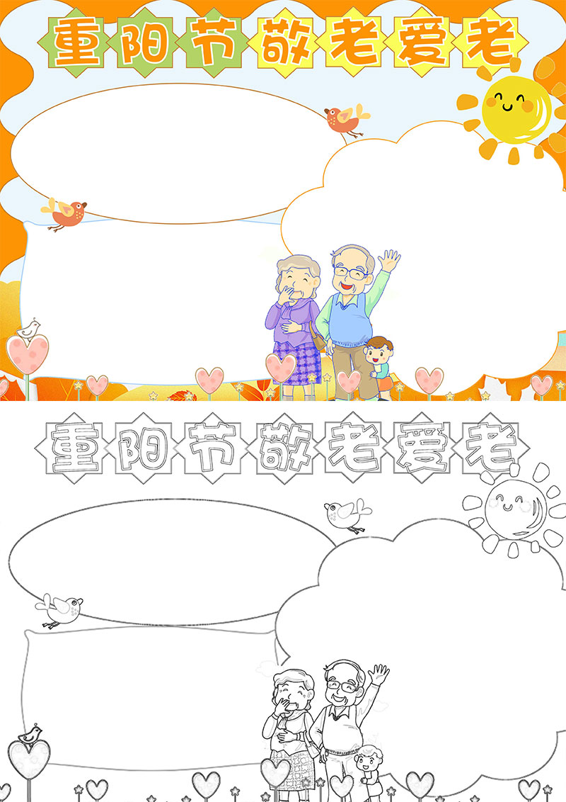**卡通可爱九九重阳节小报手抄报Word模板,格式为word,可用于手抄报/小报演讲展示,文字图片可以直接替换,使用简单方便。**