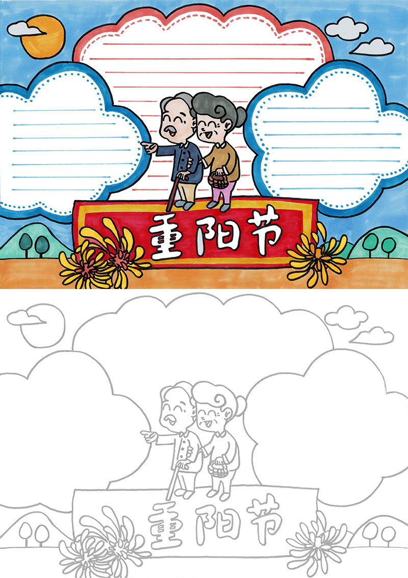 **九九重阳节重阳节小学生学校小报,格式为word,可用于手抄报/小报演讲展示,文字图片可以直接替换,使用简单方便。**