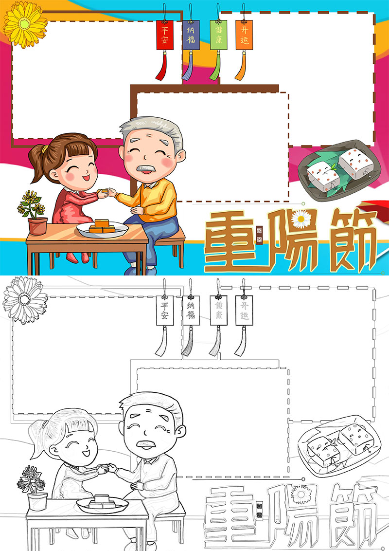 **简洁可爱重阳节小报手抄报Word模板,格式为word,可用于手抄报/小报演讲展示,文字图片可以直接替换,使用简单方便。**