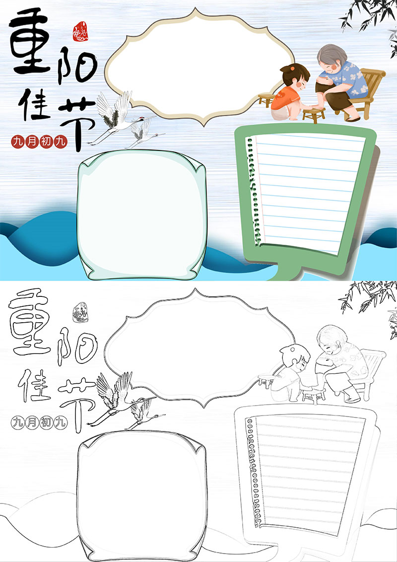 **卡通九九重阳节手抄报word模板 ,格式为word,可用于手抄报/小报演讲展示,文字图片可以直接替换,使用简单方便。**