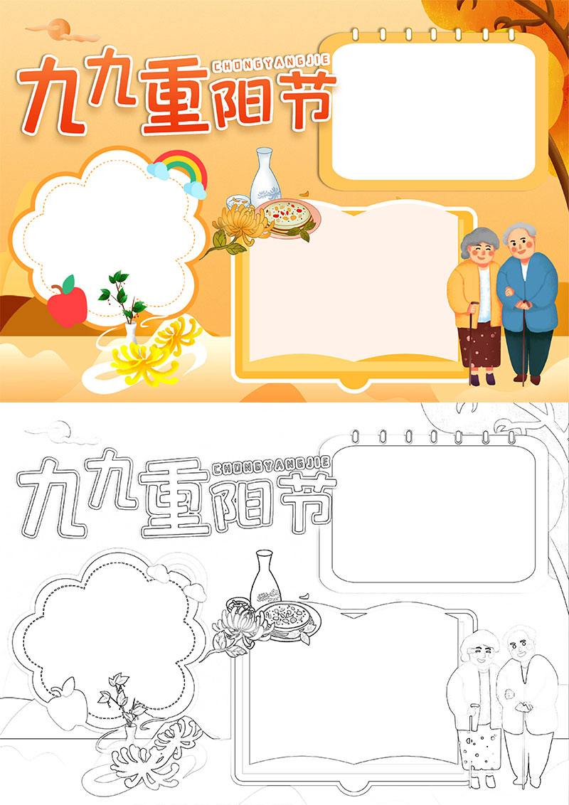 **卡通手绘温馨九九重阳节手抄报,格式为word,可用于手抄报/小报演讲展示,文字图片可以直接替换,使用简单方便。**