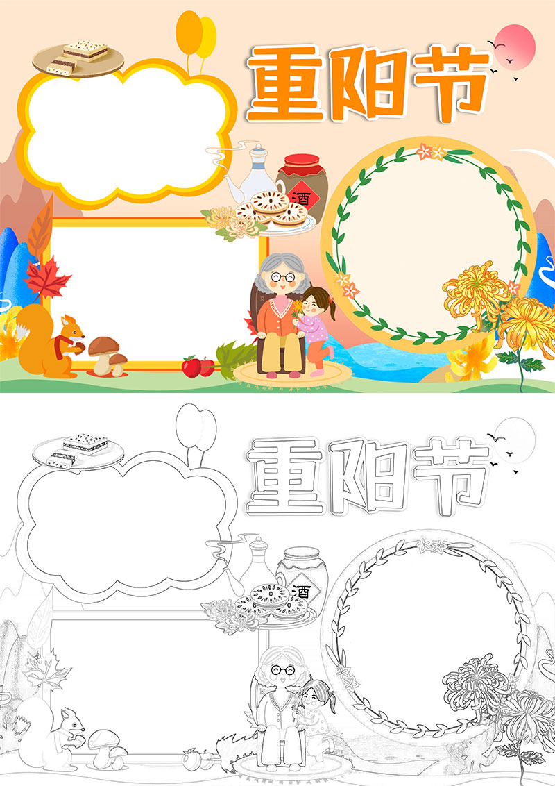 **橘色插画重阳节插画小报手抄报,格式为word,可用于手抄报/小报演讲展示,文字图片可以直接替换,使用简单方便。**
