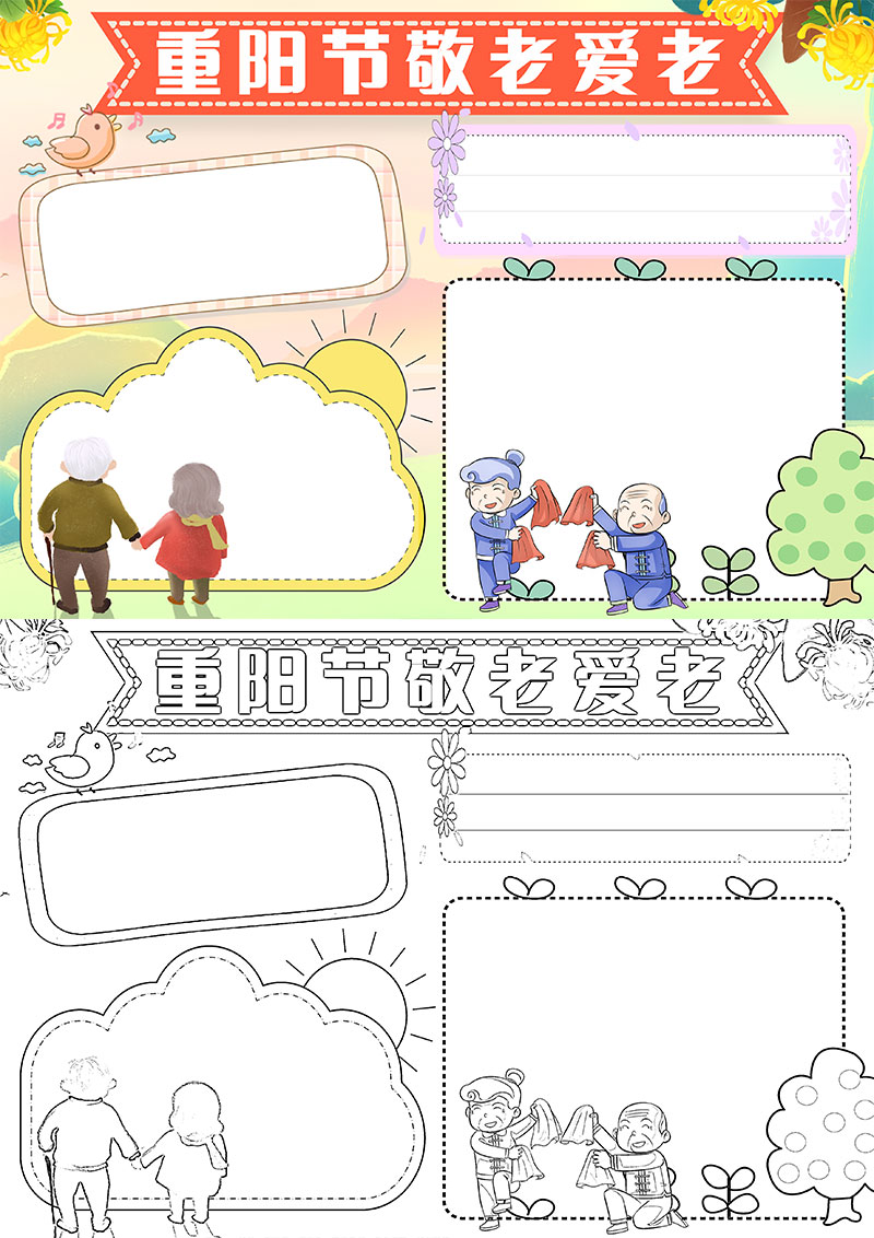 **橙色卡通九九重阳节小报手抄报word模板,格式为word,可用于手抄报/小报演讲展示,文字图片可以直接替换,使用简单方便。**