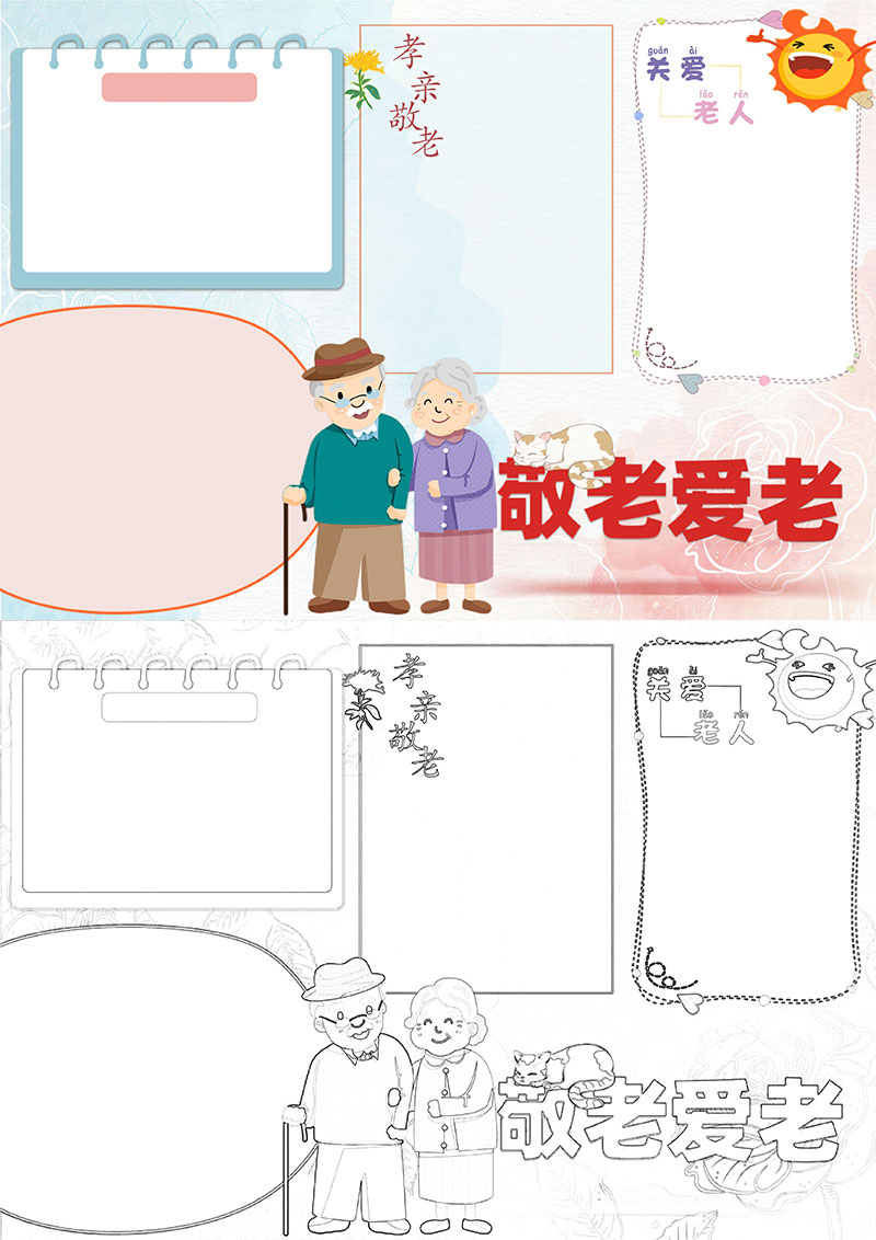 **粉色卡通重阳节敬老爱老小报Word模板,格式为word,可用于手抄报/小报演讲展示,文字图片可以直接替换,使用简单方便。**