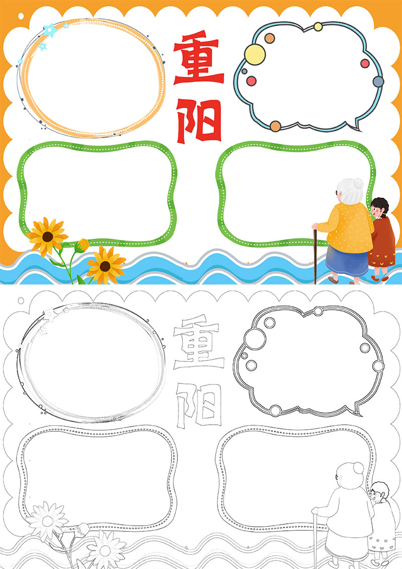 黄色卡通 重阳节小报手抄报 节日手抄报Word模板