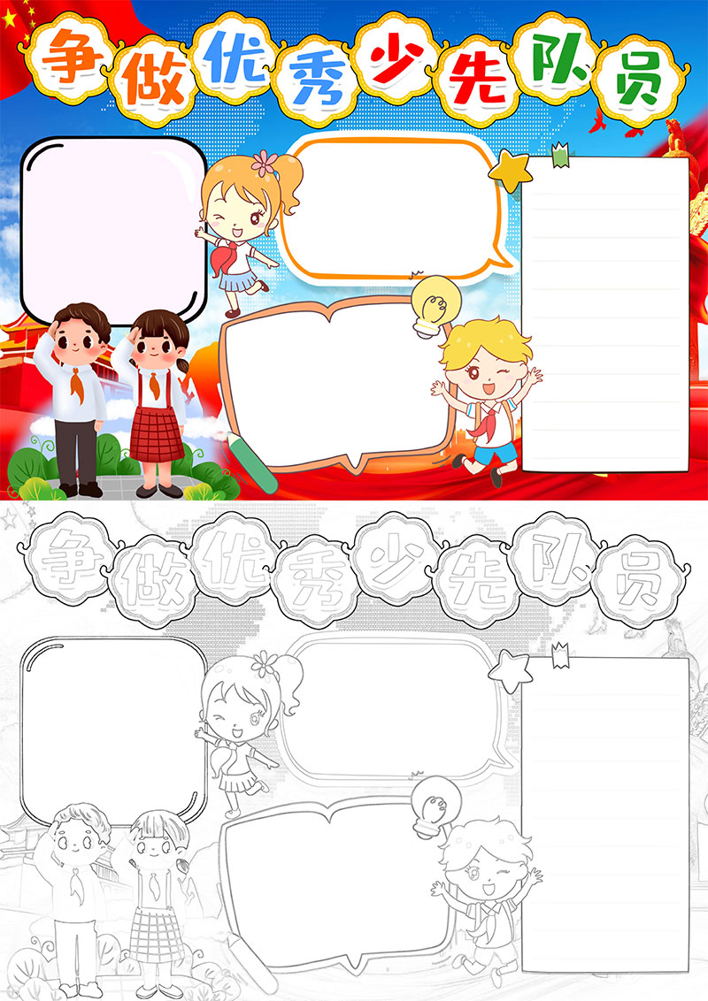 **争做优秀少先队员红领巾心向党手抄报小报模板,格式为word,可用于手抄报/小报演讲展示,文字图片可以直接替换,使用简单方便。**