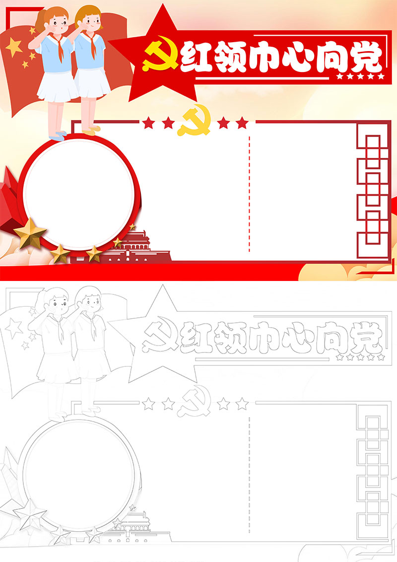 简约建党节红领巾心向党教育手抄报边框Word模板