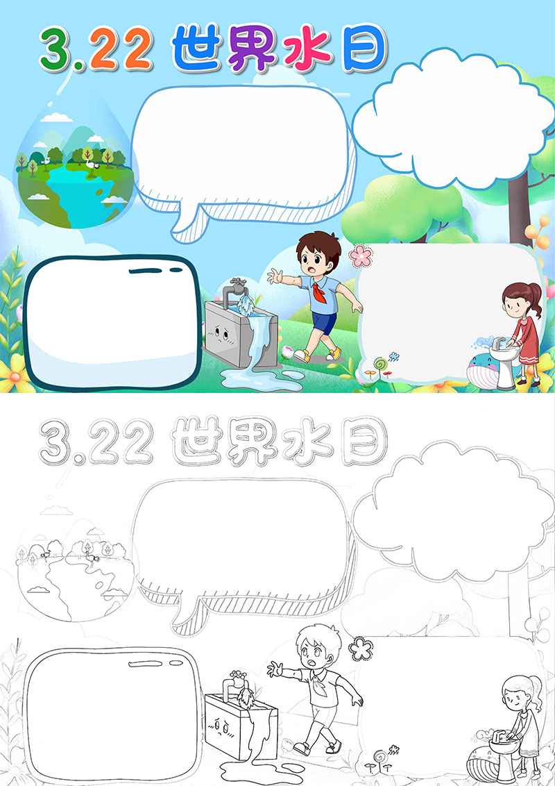 **卡通节约用水手抄报word模板,格式为word,可用于手抄报/小报演讲展示,文字图片可以直接替换,使用简单方便。**